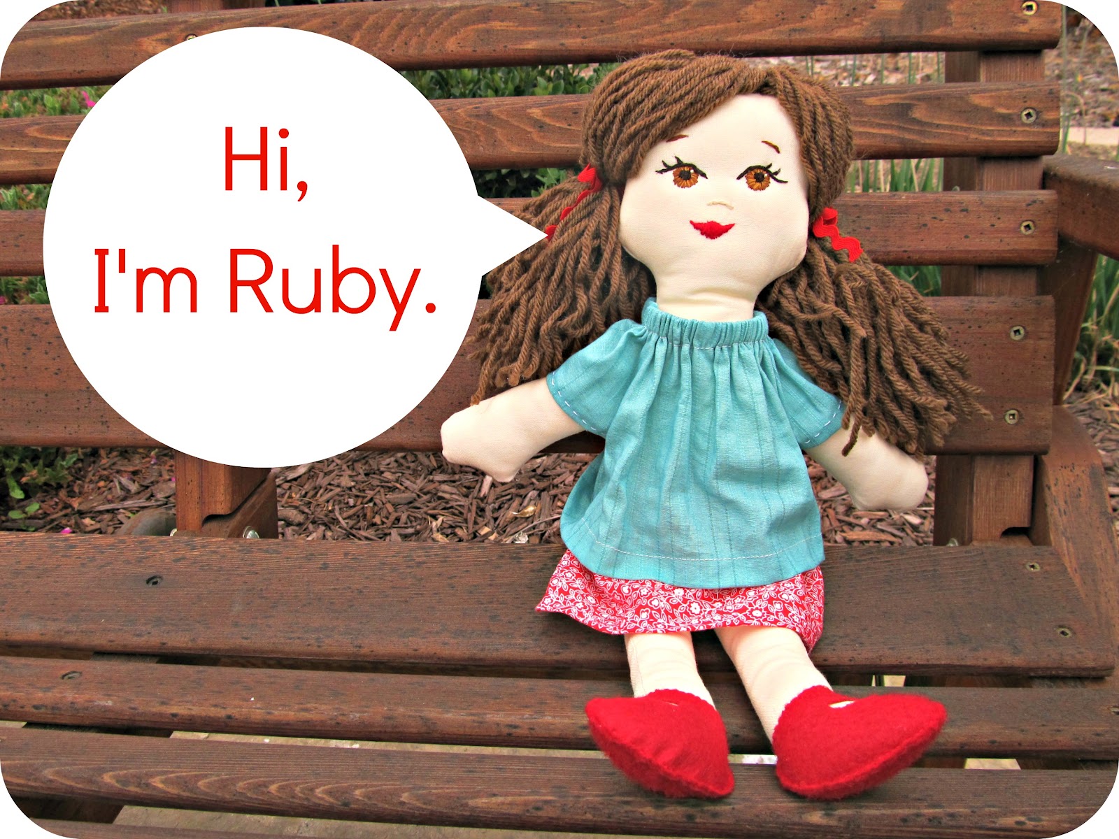 I ran out of time to make the fancy clothes I had envisioned, so these simple ones will have to do for the moment. There's plenty of time to add to the wardrobe later. Ruby really loves her doll, and that was entirely the point. :)